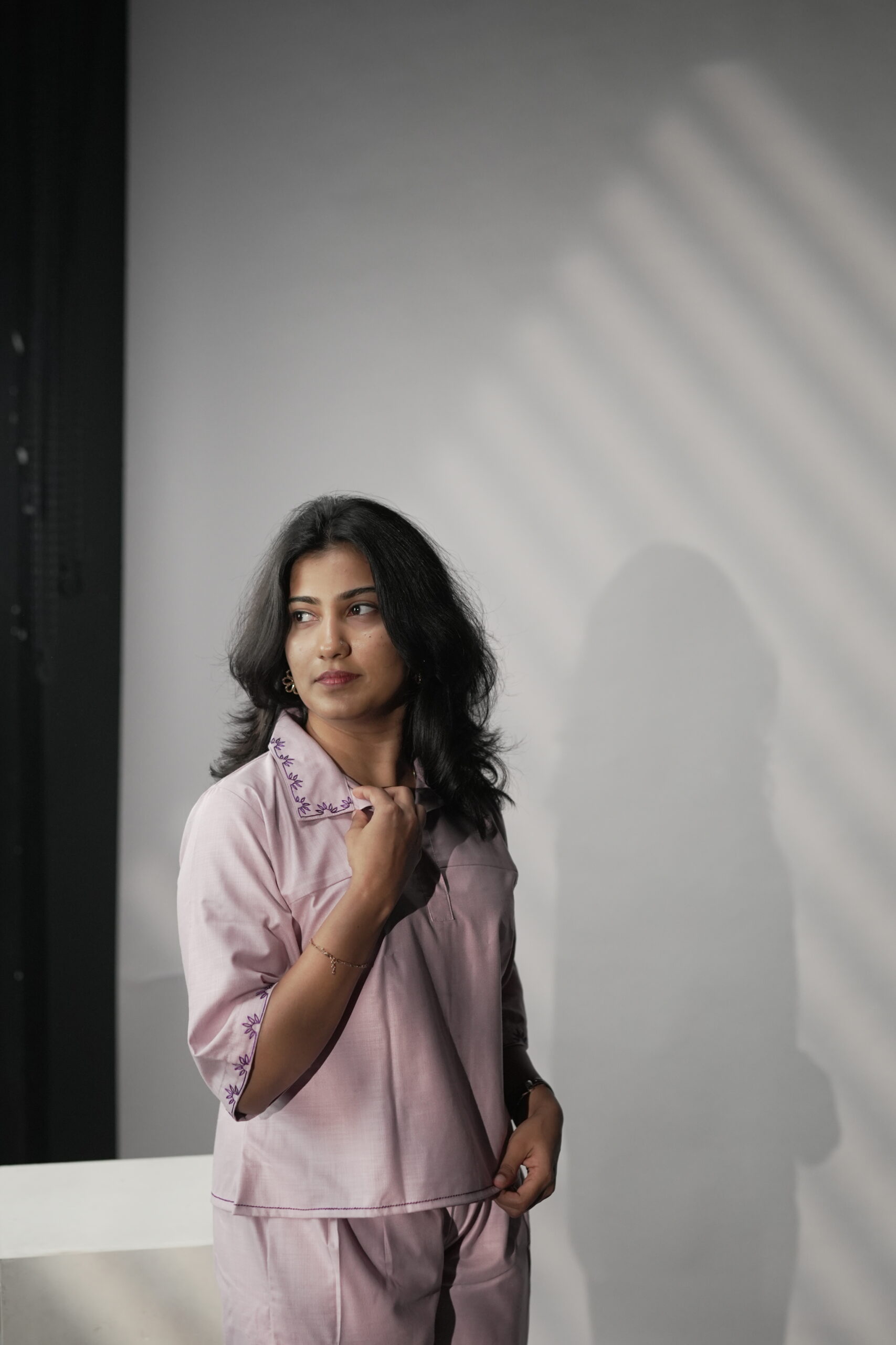 The Lavender Ease Cotton Top is designed for effortless everyday comfort with a clean, minimal silhouette. Crafted in breathable cotton, this top features a subtle collared neckline with a neat front placket, offering a balanced blend of structure and ease.