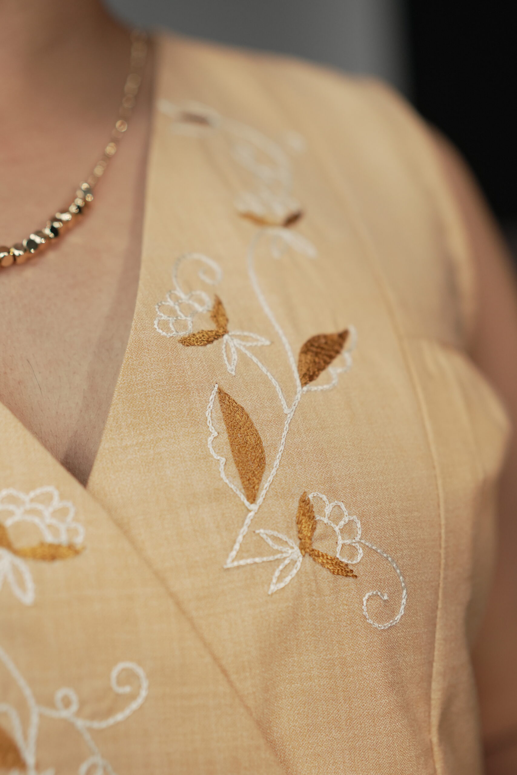 Embroidery: Hand-finished floral embroidery on front yoke