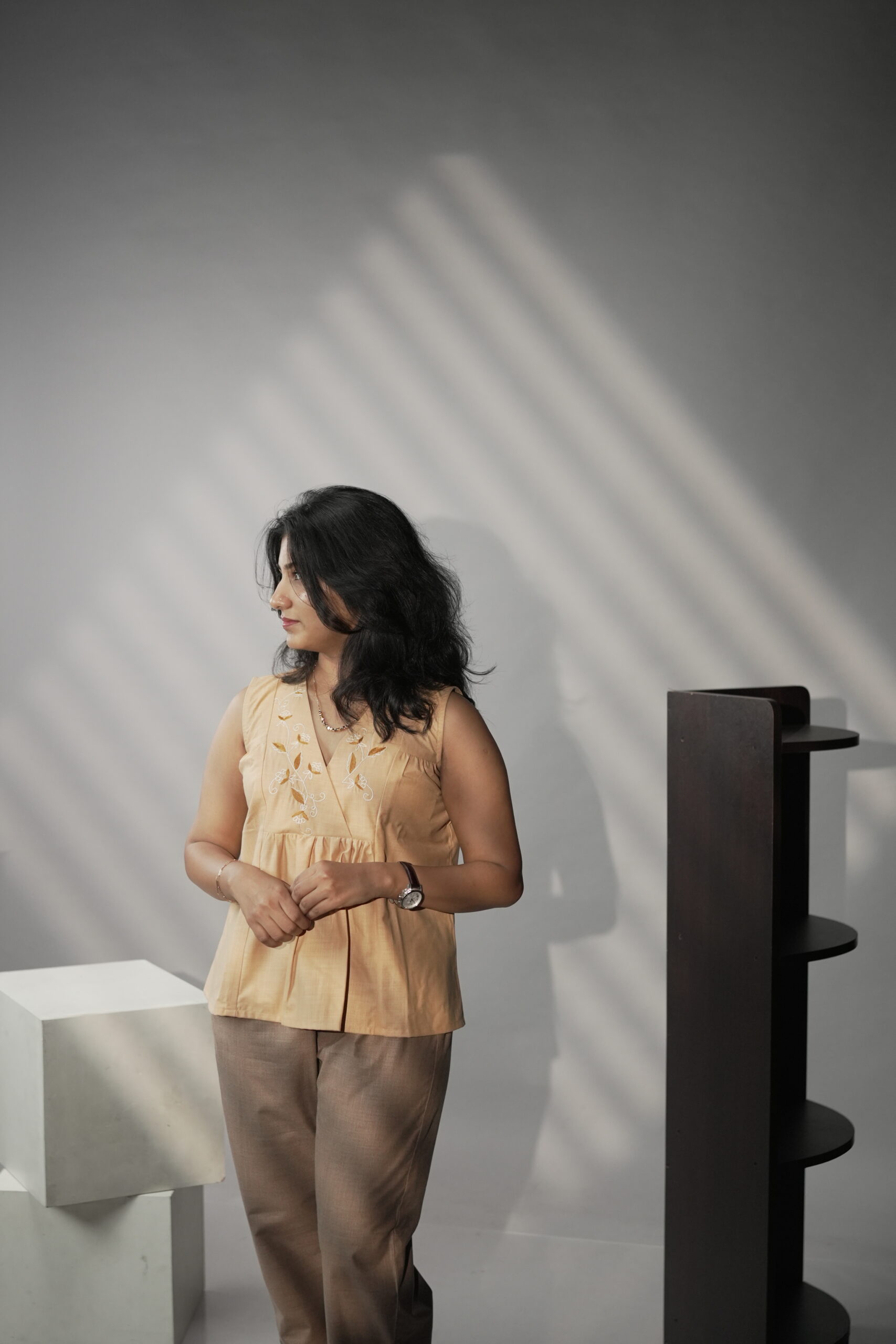 The Sunveil Embroidered Cotton Top is thoughtfully crafted in breathable cotton, designed for ease, comfort, and everyday elegance. Featuring a soft V-neckline and delicate floral embroidery across the yoke, this top reflects a quiet charm rooted in natural tones and mindful detailing.